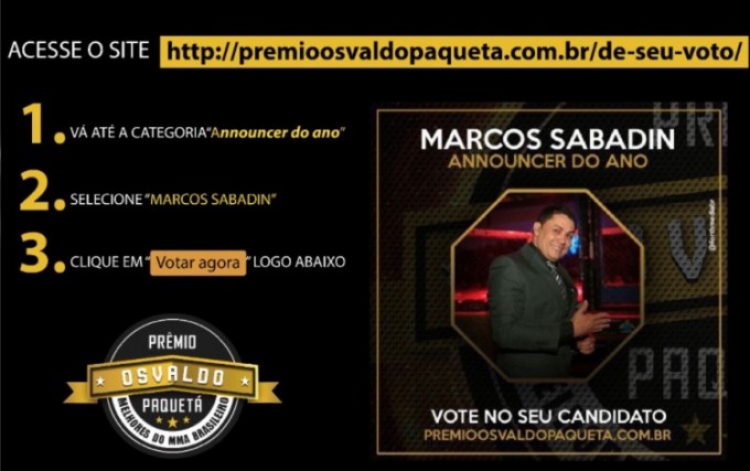 Agora, só depende do povo amazonense e demais estados da região norte para elegermos Sabadin como o Melhor Announcer do Brasil. Para Votar é necessário ter uma conta no facebook, onde será feito o login no site da premiação.