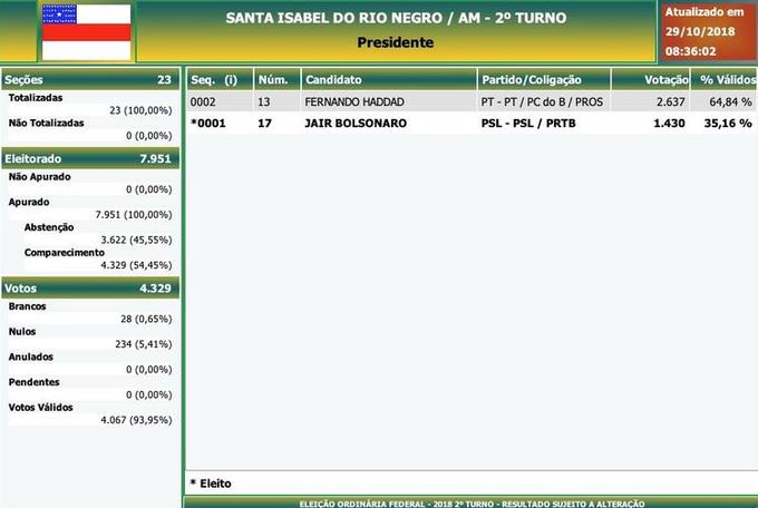 Início Amazonas 2º Turno - Presidência da República - Santa Isabel do Rio Negro
