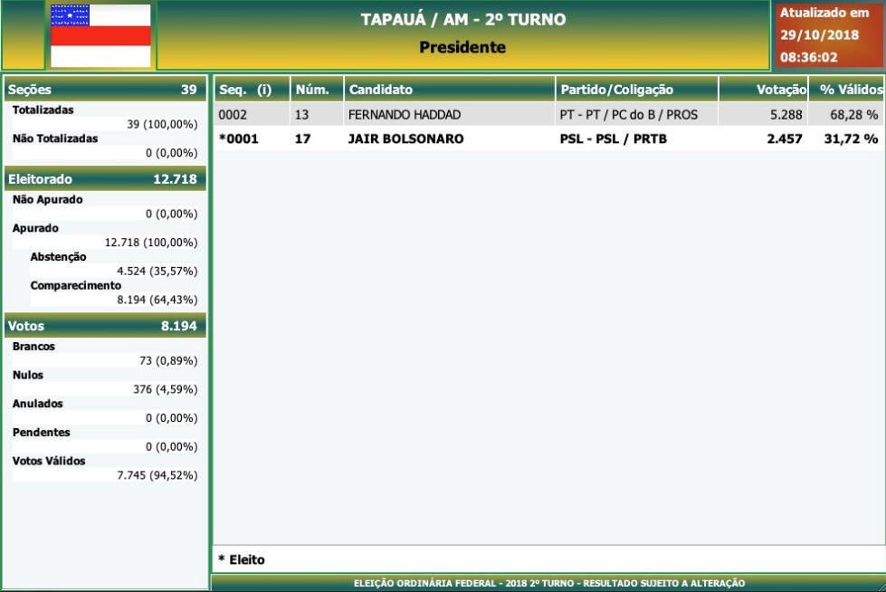 Início Amazonas 2º Turno - Presidência da República - Tapauá