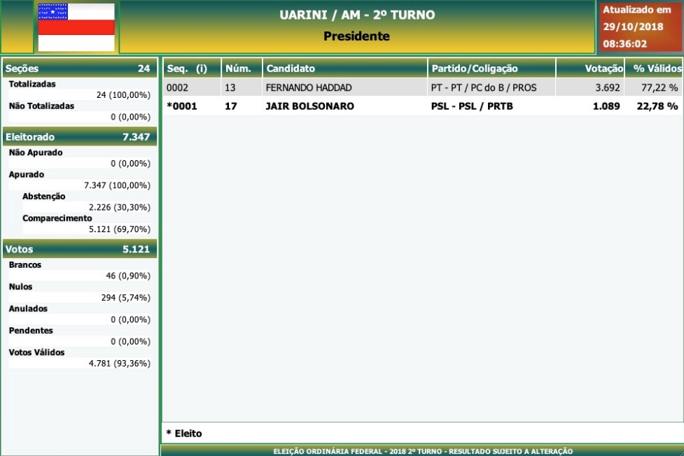 Início Amazonas 2º Turno - Presidência da República - Uarini