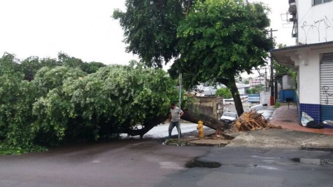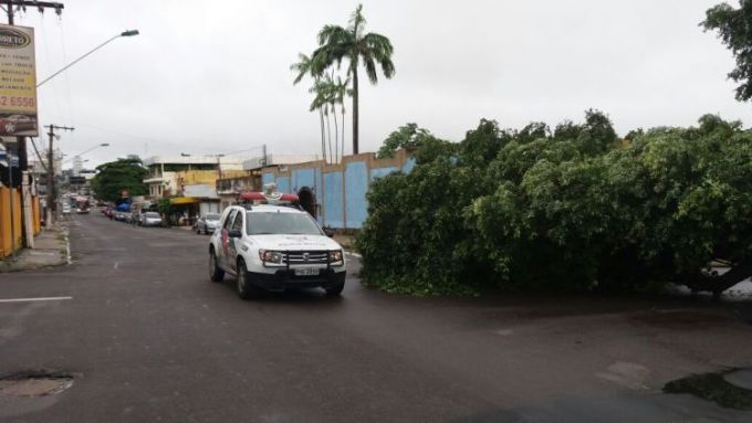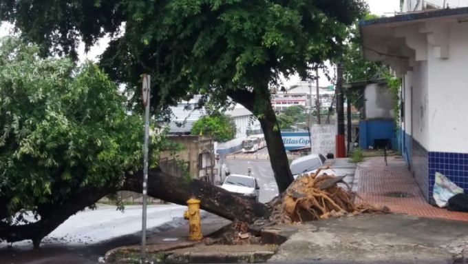 Manaus/Am - Uma árvore acabou caindo após a chuva intensa que atingiu a capital durante toda a noite de terça-feira (20), e obstruindo as ruas Leonardo Malcher e Visconte de Porto Alegre, no bairro Praça 14 de Janeiro, Zona Sul da capital.