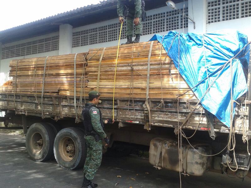 O Batalhao Ambiental em fiscalizacao de rotina apreendeu na Avenida Brasil, Santo Antônio, um caminhao transportando 53m3 de madeira ilegal serrada - azimbre e ripas - tendo como acusado o condutor Julio Cesar Marinho Fernandes, que foi apresentado na Delegacia do Meio Ambiente-DEMA para as providências cabíveis.