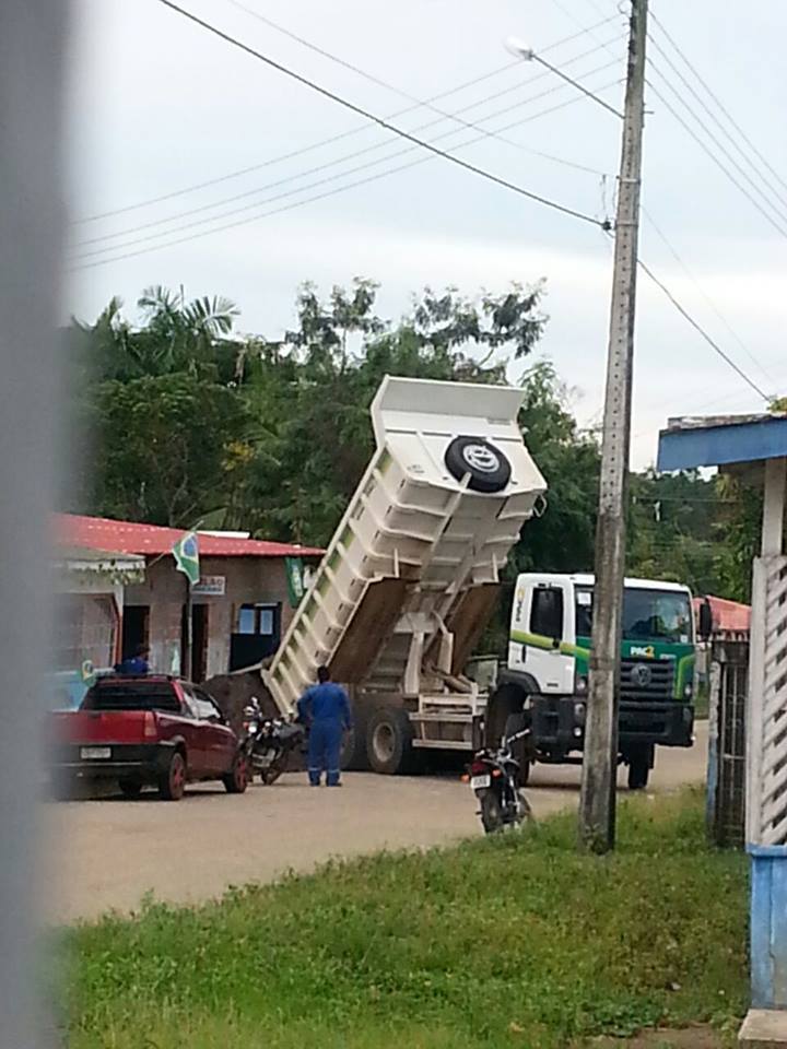 ITAPIRANGA (AM) - Uma caçamba entregue este ano para o município de Itapiranga, através do Programa de Aceleração do Crescimento 2 (PAC2) foi flagrado realizando uma "carrada" de barro em uma residência particular do município.