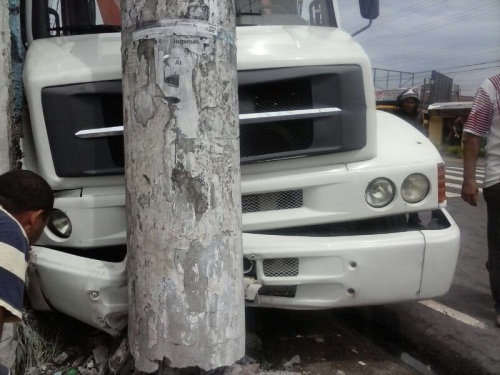 O caminhão de placas JXG-3226, trafegava pela avenida Autaz Mirimquando perdeu a direção e, além de praticamente derrubar um poste de distribuição de energia, ainda atropelou uma mulher que, de acordo com testemunhas, teve ferimentos graves, pois ficou presa pelo caminhão. Bombeiros tiveram que trabalhar para liberar s mulher das ferragens.