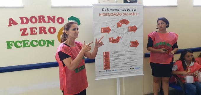 A médica infectologista da FCecon, Silva Leopoldina Santos de Souza, frisou que as mãos constituem a principal via de transmissão de microrganismos durante a assistência prestada aos pacientes. Assim, segundo ela, a higienização delas é a medida mais simples e menos dispendiosa para prevenir a propagação das infecções relacionadas à assistência à saúde.