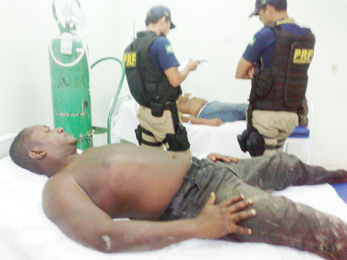 Graças a DEUS, não houve fraturas nos 3 ocupantes. O motorista Bebeto bateu o peito no volante, eu bati a cabeça na coluna do para-brisa e André sofreu uma pequena torção na coluna e pequenos cortes de grãos de vidros na cabeça. Deixamos o local com apoio de um motorista de um carro do tipo besta, que se deslocava para Presidente Figueredo até o hospital da cidade.