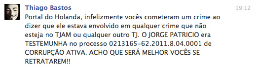 No site do tribunal de Justiça, Jorge Patricio Azevedo Neto parece como réu no processo n°: 0213165-62.2011.8.04.0001, no qual responde por corrupção ativa.