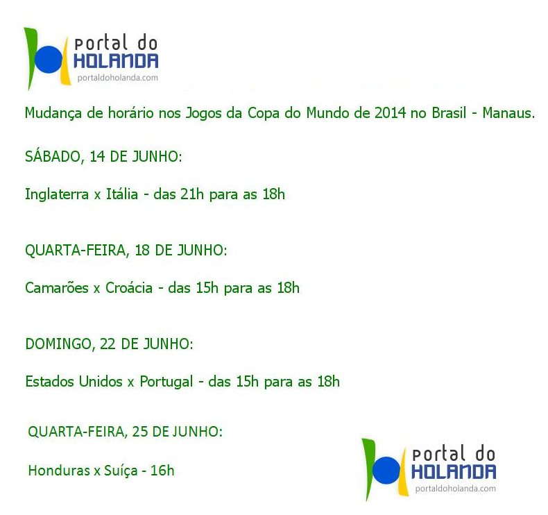 O grupo de ingleses e italianos é D. Camarões e Croácia, que cairam no Grupo A, farão o segundo jogo na Arena da Amazônia, no dia 18/06, às 15h. No dia 22, às 15h, pelo grupo G, a seleção dos Estados Unidos enfrentará Portugal.