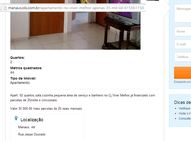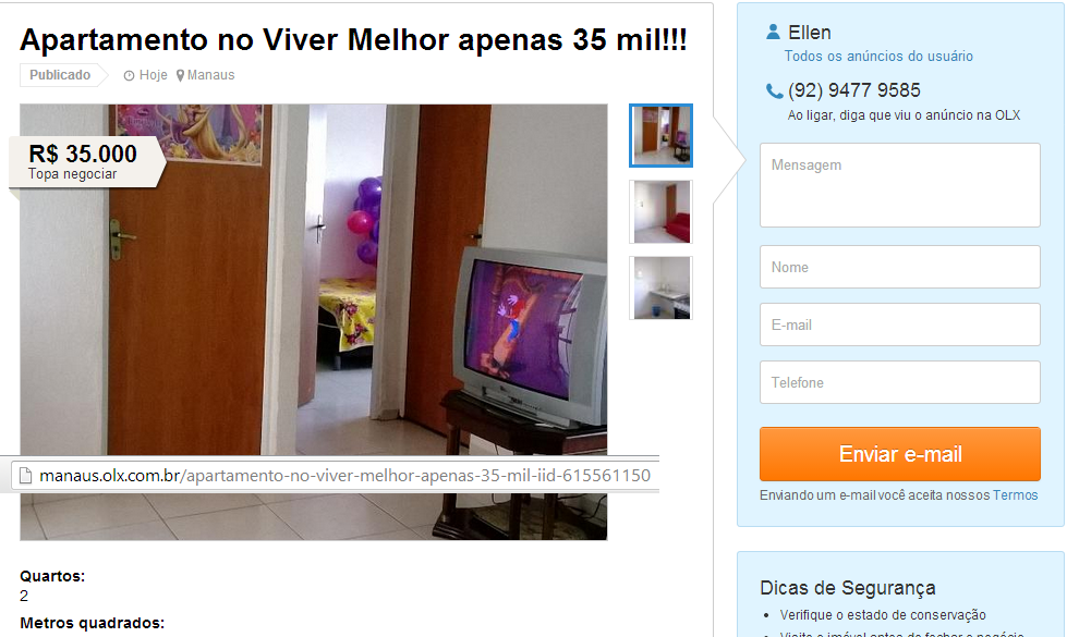 Desta vez o flagrante foi encontrado no site de vendas "OLX", com a oferta de um apartamento no Viver Melhor, no valor de R$ 35 mil, ainda podendo negociar, mais as parcelas no valor mensal de R$ 25 reais.