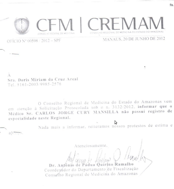Jezini, além de supostamente não ter agido para impedir que o médico Carlos Cury continuasse a atuar na área de cirurgia estética, sem ter qualificação para isso ( ele expediu certidão ano passado confirmando a falta de especialização do colega, responsável por cirurgias que mutilaram dezenas de mulheres em Manaus), logo em seguida permitiu que fosse mudada, no site do CRM, a folha do profisisonal, acrescentando a especialidade que o proprio conselho havia informado não constar de seu curriculo.