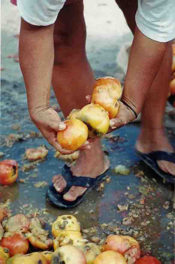 Só que a verdade demora apenas o tempo de chegar o primeiro comprador, que escolhe o produto e paga R$ 25 por uma saca de batata ou de cebola ou por uma caixa de tomate em precário estado de conservação.