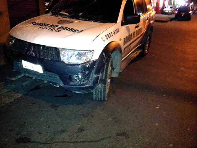 Uma outra viatura que estava próxima foi acionada para ajudar. Após alguns minutos, a moto colidiu com uma das viaturas e a outra viatura colidiu com um veículo de um morador do bairro.