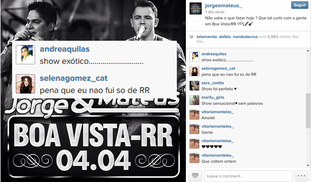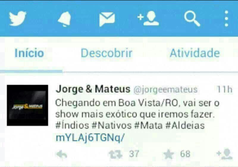 Na postagem a dupla associa Boa Vista como se fosse em Rondônia (Boa Vista fica em Roraima) e diz que a apresentação seria "o show mais exótico" que iriam fazer. Em seguida postaram as hashtags #Índios #Nativos #Mata #Aldeias