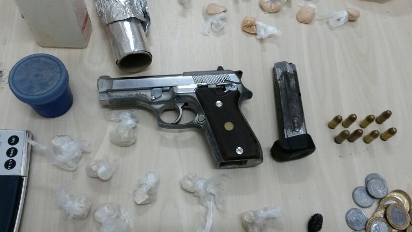 Em vídeo, a dupla confessa o porte de uma pistola Taurus de aço inox. Com eles também foram encontrados pasta base de cocaína, oxi, balança de precisão, munições e dinheiro. Os policiais estranharam o umbigo de um deles que estava branco. Desconfia-se que no desespero ele tentou esconder a droga no primeiro 'buraco' que encontrou.
