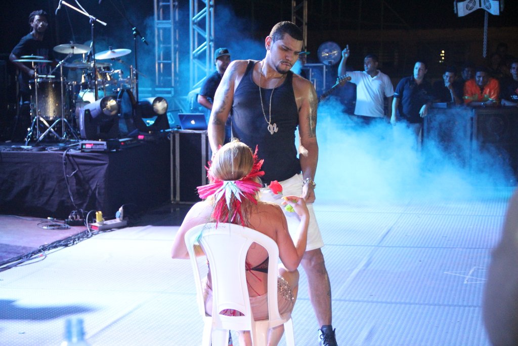 Durante o show na noite da quinta-feira (27), em Parintins, no Amazonas, ele dançou com uma fã 'para lá de atrevida', e os dois fizeram uma coreografia bem sensual, em posições sugestivas.