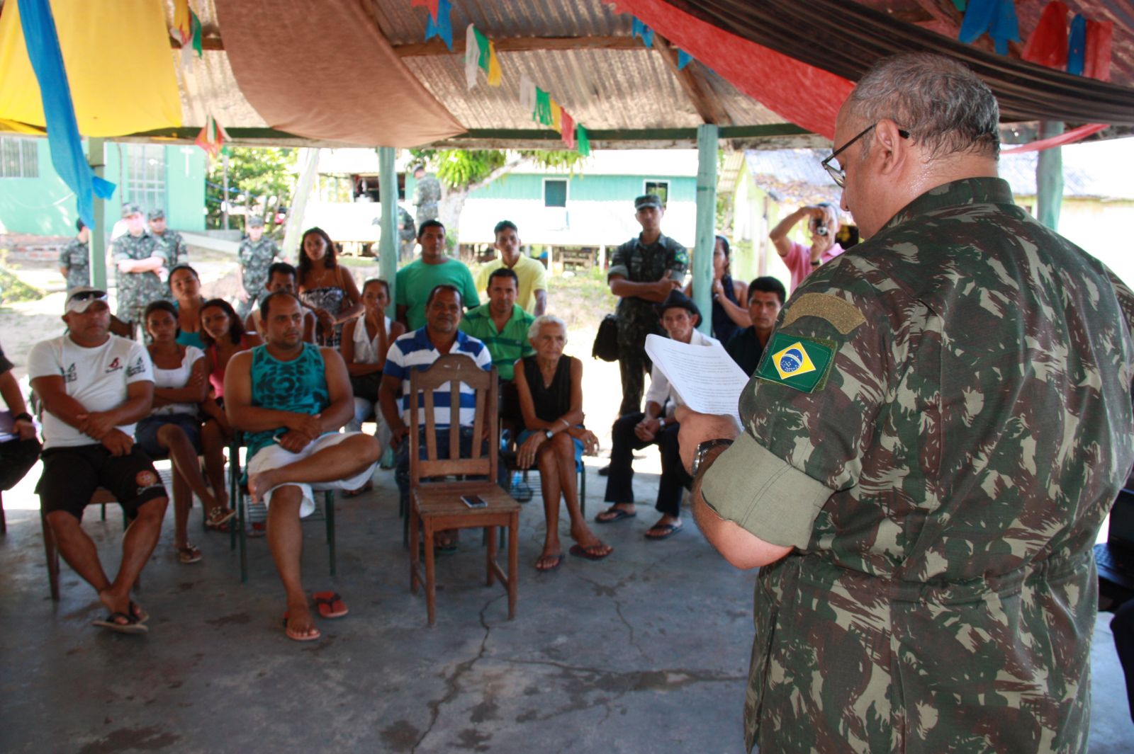 Na presença do procurador-chefe da Advocacia-Geral da União no Amazonas, Allan Carlos Moreira Magalhães, do procurador da República Julio José Araujo Junior, do superintendente da SPU no Amazonas, Silas Garcia Aquino de Sousa, e dos comunitários, representantes do Exército fizeram a leitura integral do requerimento a ser assinado pelos moradores e detalharam cada uma das regras de convivência estabelecidas em comum acordo entre militares e comunitários, durante as reuniões realizadas.
