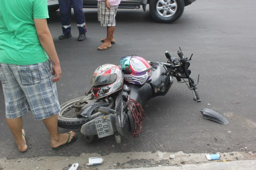 Manaus/AM – Colisão entre o Fiat Siena vermelho de placas OAM-4163 e motocicleta Honda CG 125 Fan resultou em dois feridos em acidente ocorrido por volta das 15h na avenida da Penetração, no bairro Japiim, zona Sul.