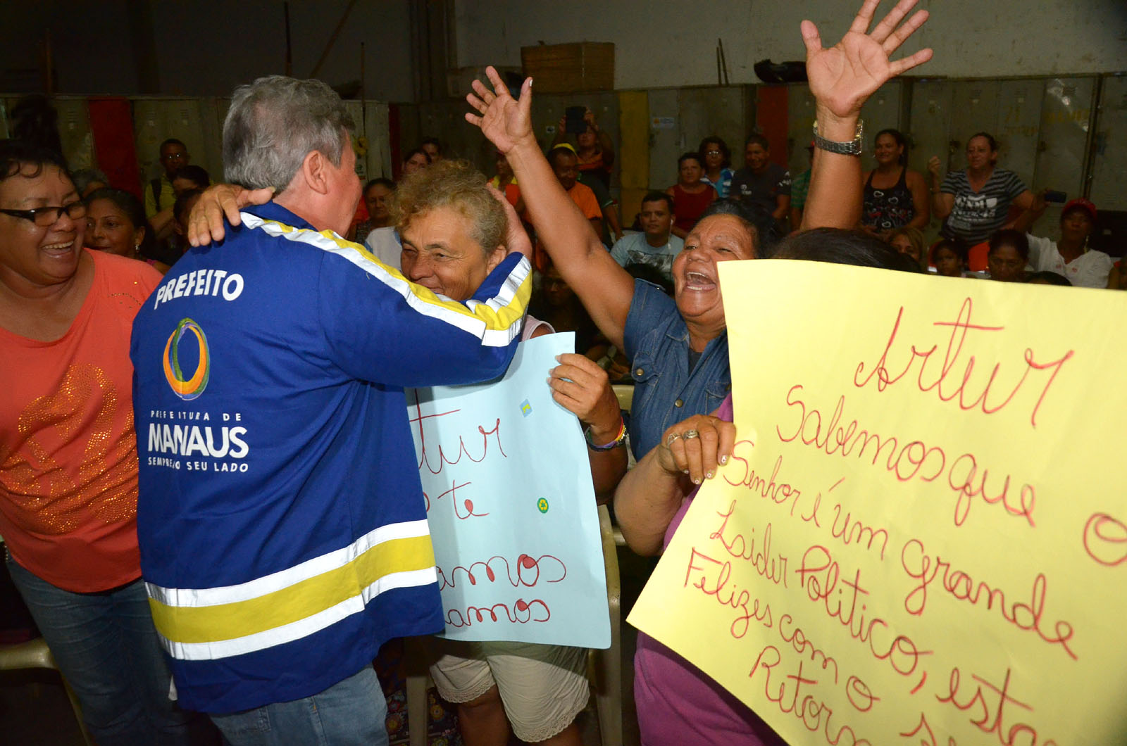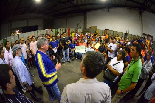 O prefeito de Manaus, Artur Virgílio Neto, se reuniu, na noite de segunda-feira, 12, com um grupo de garis da Secretaria Municipal de Limpeza e Serviços Públicos (Semulsp), em um espaço conhecido como Garaginha, no bairro Aparecida, zona Sul da cidade. O encontro foi realizado para que fossem discutidos problemas relacionados aos 1.270 garis do quadro da secretaria, como vale-refeição, vale-transporte e salário.