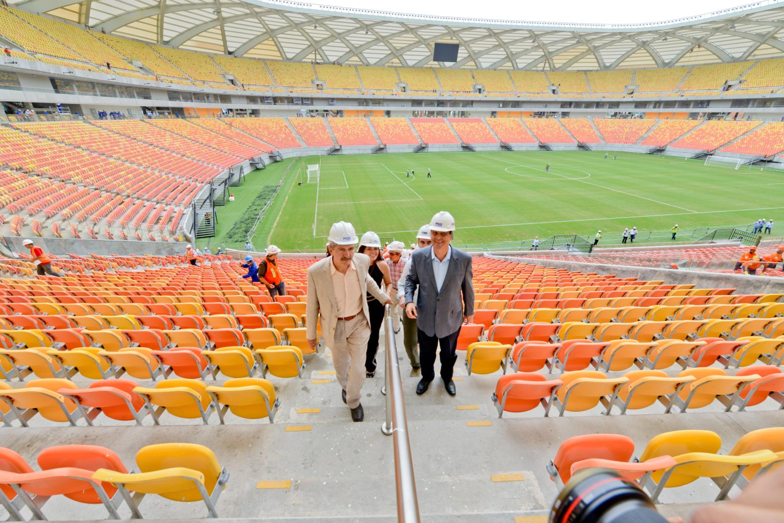 Visita à Arena – Após visitar a Arena da Amazônia e concluir que os trabalhos estão nos acabamentos finais, o ministro Aldo Rebelo elogiou o principal palco da Copa 2014 em Manaus, que, segundo ele, faz jus ao projeto arquitetônico. “A Arena está adaptada ao ambiente da cidade e da região. Se encaixa na paisagem, é confortável e simples ao mesmo tempo e acho que assegura para a cidade não apenas um belo espetáculo na Copa, mas um benefício permanente”, disse o ministro. Neste domingo, dia 16, Rebelo volta à capital amazonense para acompanhar o secretário-geral da FIFA, Jérôme Valcke em visita de inspeção ao estádio da Copa.