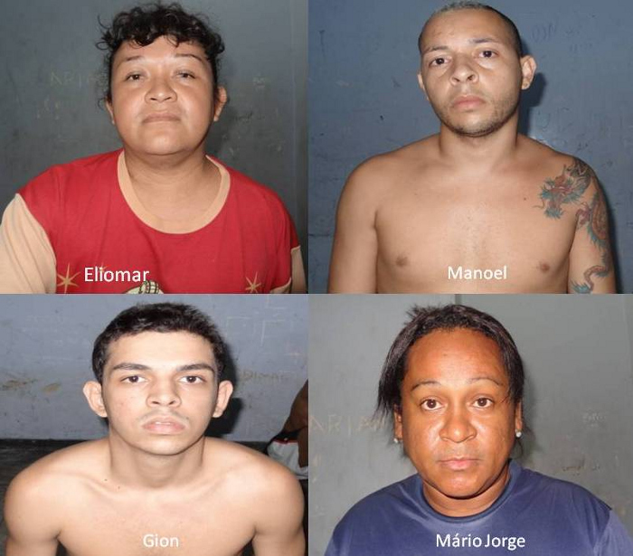 Eliomar Freitas dos Santos, 37, Ewerson Gustavo de Souza Frazão, 20, Gion Plácido Amazonas da Cunha,19, Mário Jorge Ferreira da Silva, 34, e Manoel Silva de Freitas, que não teve a idade divulgada, foram presos após investigações, iniciadas a partir de denúncias feita por populares. Os Policiais Civis montaram campana no local e conseguiram fazer o flagrante.