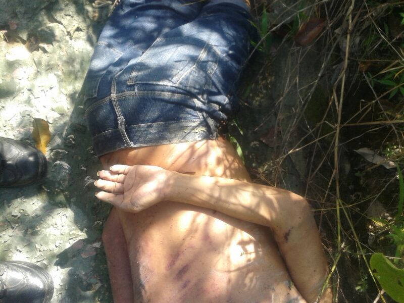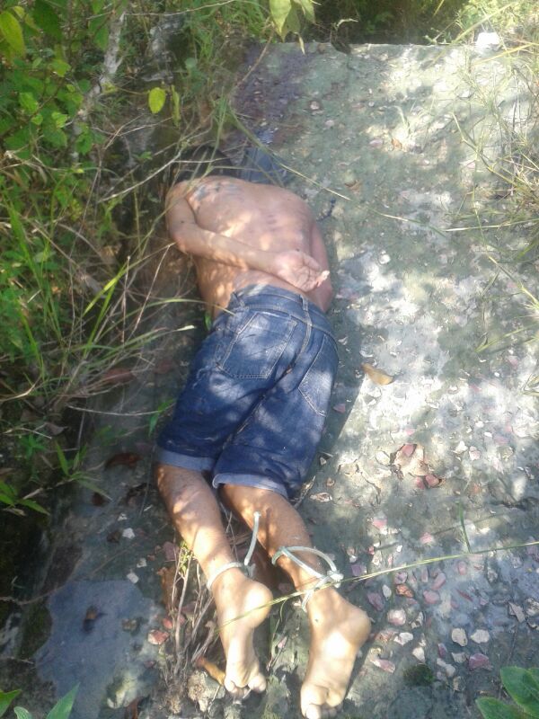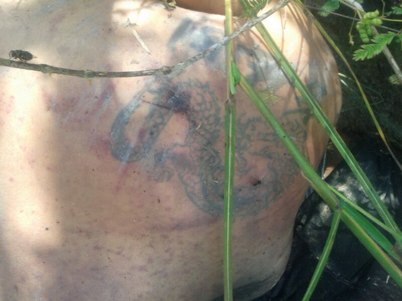 Com os pés amarrados e olhos vendados, o corpo do rapaz que possui uma tatuagem nas costas foi encontrado com várias marcas e sinais de tortura.