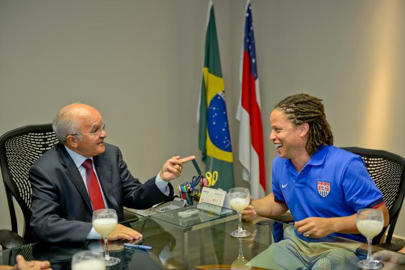Durante o encontro com o ex-jogador e representantes da embaixada dos Estados Unidos no Brasil, José Melo destacou projetos sociais do Governo do Estado que envolvem atividades esportivas, como o Bom de Bola, o Galera Nota Dez e o Jovem Cidadão. Com a presença cada vez mais frequente de delegações e representantes dos governos de países cujas seleções vão jogar em Manaus, as ações estão ganhando visibilidade e sinalizam oportunidades de novas parcerias, segundo o governador.