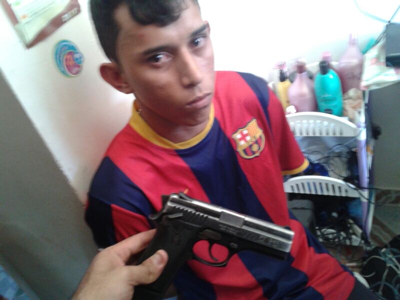 A arma, encontrada na casa de Jandercley, de acordo com os policiais teria sido roubada de um policial em dezembro do ano passado.