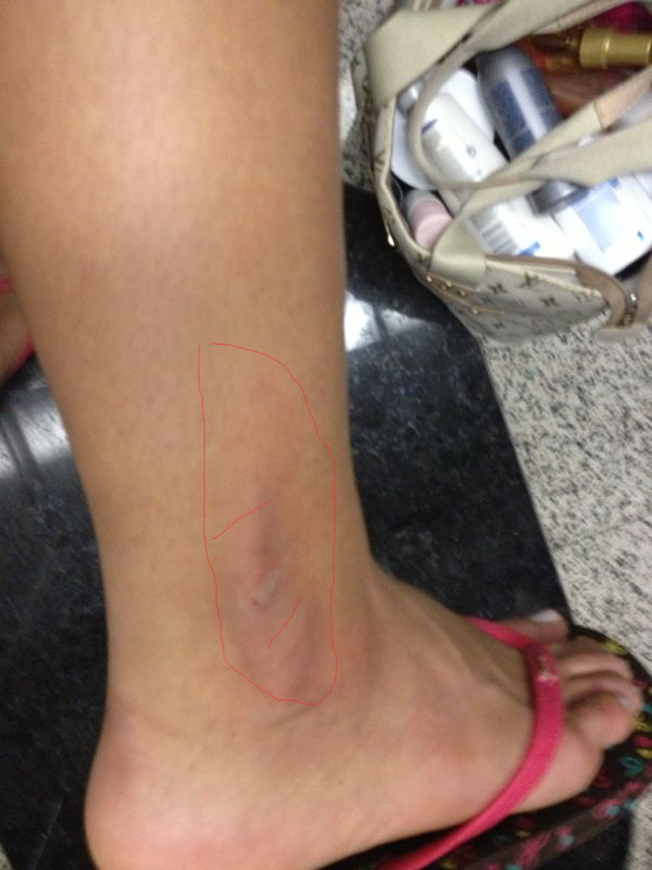 Gisele também foi ferida no pé. Ao ser esganada e girada, conforme seu relato à Polícia, ela bateu com a perna numa lixeira, o que provocou o ferimento.
