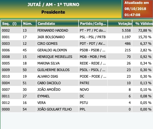 Início Amazonas Jutaí: Presidente - Candidatos mais votados