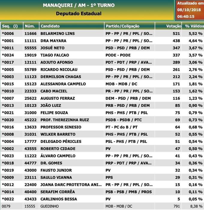 Manaquiri: Deputados estaduais - candidatos mais votados