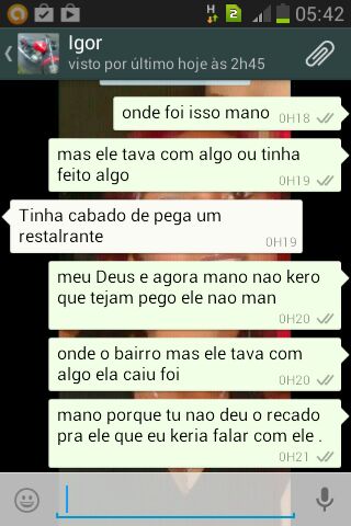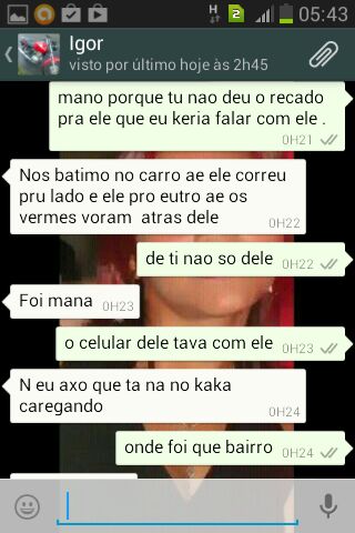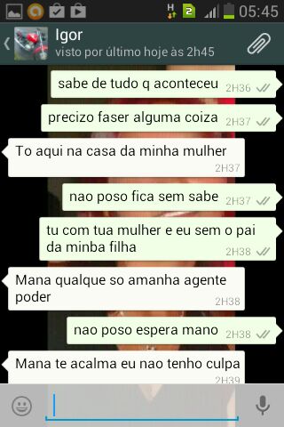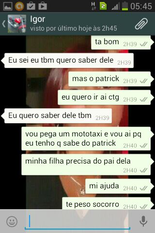 Enquanto se escondia da polícia, Ígor manteve conversa com a mulher de Patrick, onde ela pede socorro pois a filha dela iria ficar sem pai. Isso demonstra que ela pouco se importava em saber que o marido havia tirado a vida de outro pai. Confira a conversa: