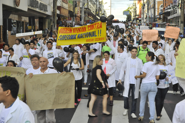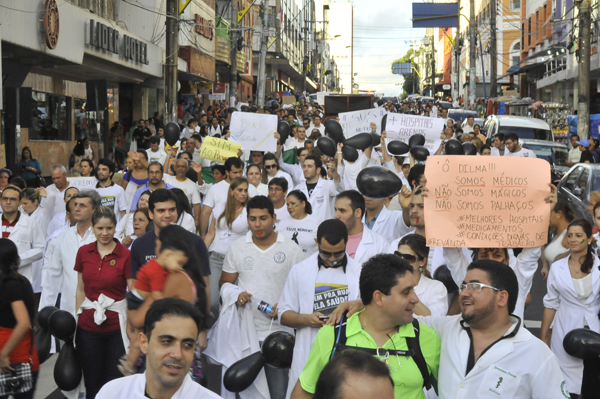 Cerca de 500 médicos e estudantes de medicina, concentrados desde às 15 horas no Largo de São Sebastião, realizaram passeata sob a palavra de ordem "Dilma, Dilma, Dilma, vem para o SUS", nas Avenidas Getúlio Vargas, Sete de Setembro e Avenida Eduardo Ribeiro.l