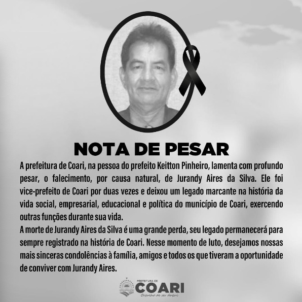 “A morte de Jurandy Aires da Silva é uma grande perda, seu legado permanecerá para sempre registrado na história de Coari. Nesse momento de luto, desejamos nossas mais sinceras condolências à família, amigos e todos os que tiveram a oportunidade de conviver com Jurandy Aires”, lamentou a prefeitura em nota de pesar.