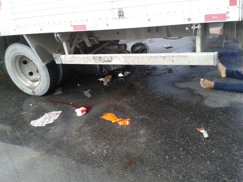 Os dois que estavam na moto foram esmagados pelas rodas do caminhão, que não conseguiu evitar o acidente. Conforme testemunhas o motoqueiro vinha em altíssima velocidade antes do acidente, culminando na morte dos dois ocupantes da moto.