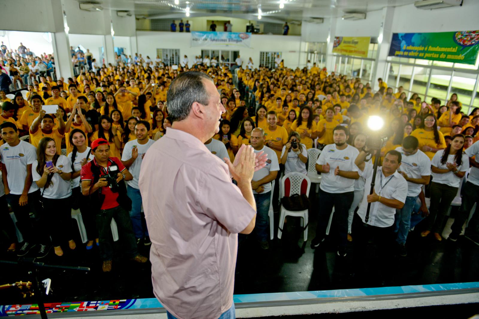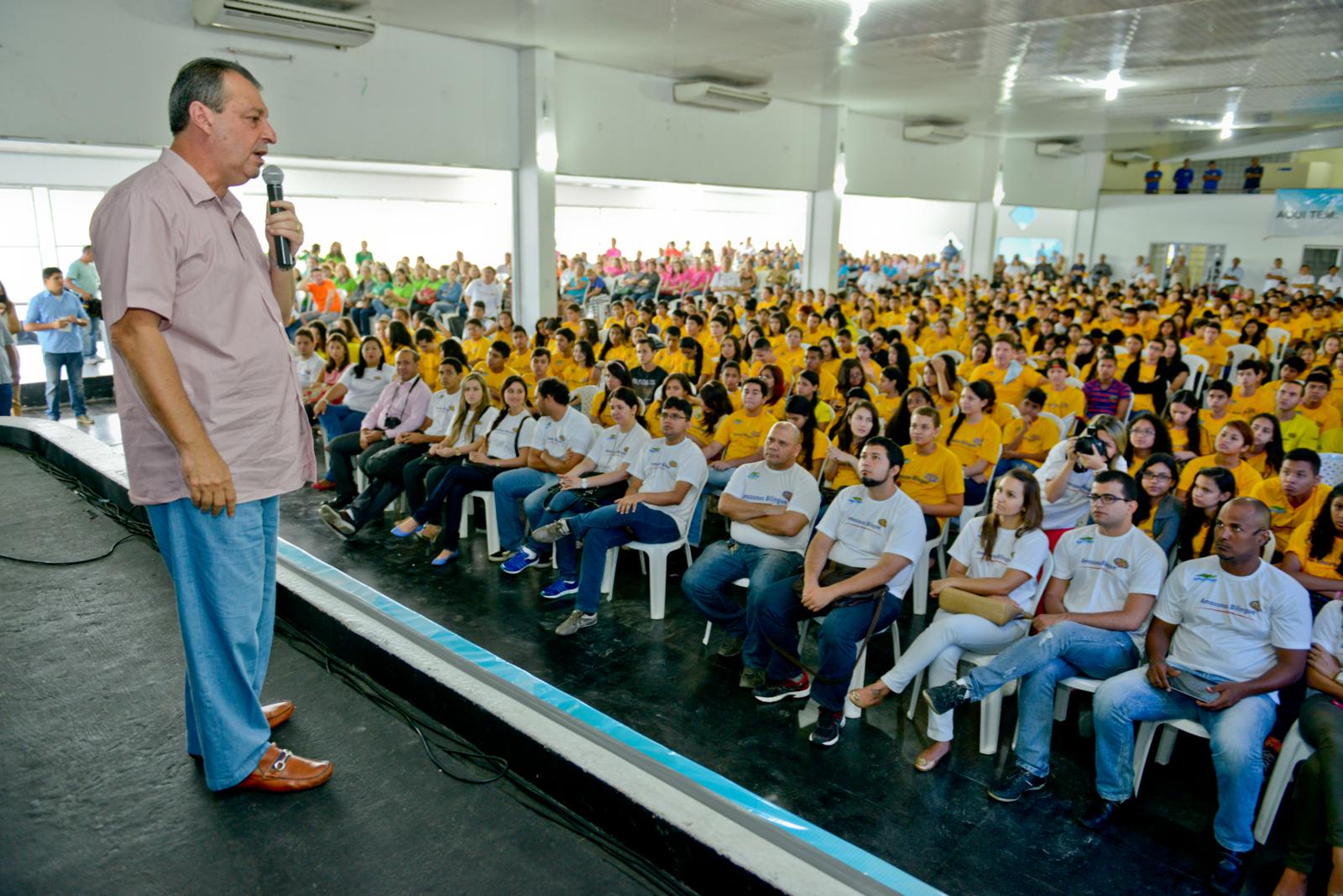 O Governo do Amazonas iniciou na manhã deste sábado, dia 22 de março, uma nova turma do programa Amazonas Bilíngue, que oferece curso gratuito de inglês para alunos de escolas públicas. Com a presença do governador Omar Aziz e do vice-governador José Melo, a aula inaugural para 1.140 jovens da capital e do interior aconteceu no Círculo Militar de Manaus , no bairro São Jorge, zona oeste de Manaus.
