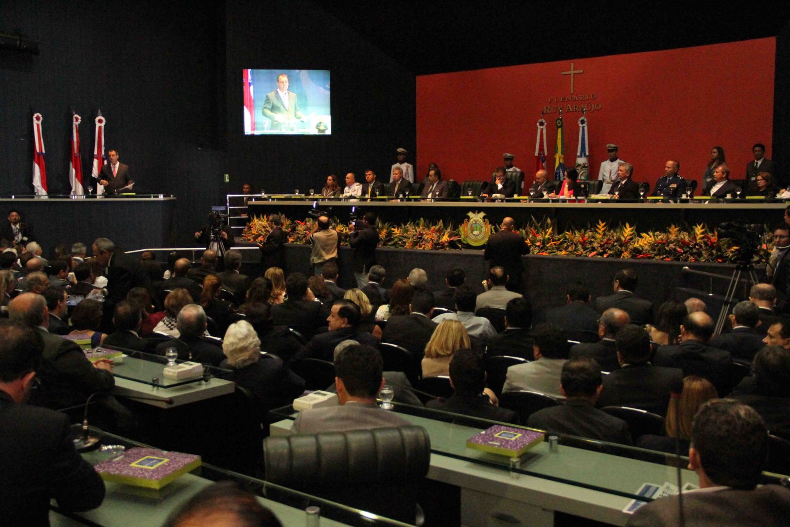O prefeito e o governador chegaram juntos a casa legislativa, acompanhados de suas esposas Goreth Garcia e Nejmi Aziz, respectivamente. Além do presidente da Aleam, Josué Neto, também formaram a mesa diretora o vice-governador José Melo, o deputado federal Carlos Souza, o presidente da CMM, vereador Bosco Saraiva, entre outras autoridades. A última mensagem de Omar como governador do Amazonas foi acompanhada por diversos secretários estaduais e municipais que lotaram o plenário da Assembleia Legislativa.