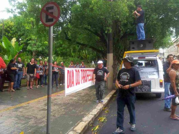 Manaus/AM – Professores aproveitam sua data para fazer protesto por melhores salários, como reajuste de 20%, plano de saúde, vale transporte, auxilio alimentação, entre outros benefícios.