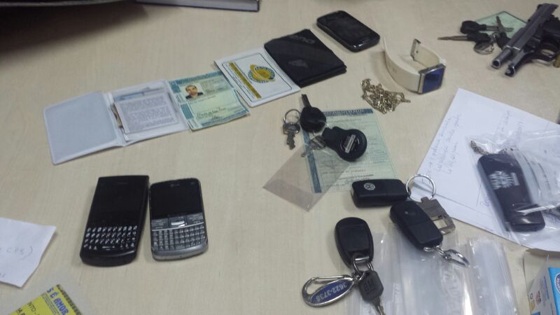 Com eles foram encontrados três veículos, dois deles adulterados, armas, balança de precisão e várias chaves de outros veículos. Com o bando também foi identificado um carro que havia sido roubado de um delegado de polícia.