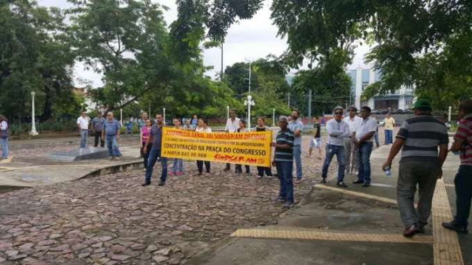 Cerca de 30 servidores Públicos Federais participam do ato organizado pelo Sindicato dos Servidores Públicos Federal no Amazonas - SINDSEP-AM na Praça do Congresso.