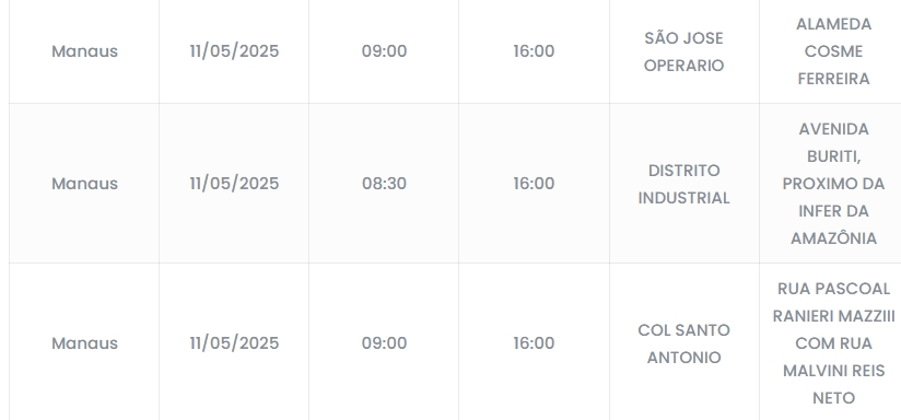 Início Amazonas Sete bairros de Manaus ficarão sem energia neste Dia das Mães; confira