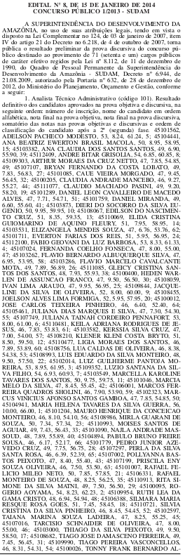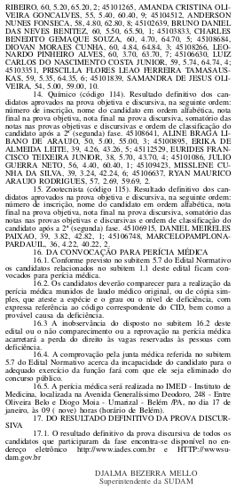 Edital com nomes e notas está publicado no Diário Oficial da União que circulou nesta seXta-feira. Confira: