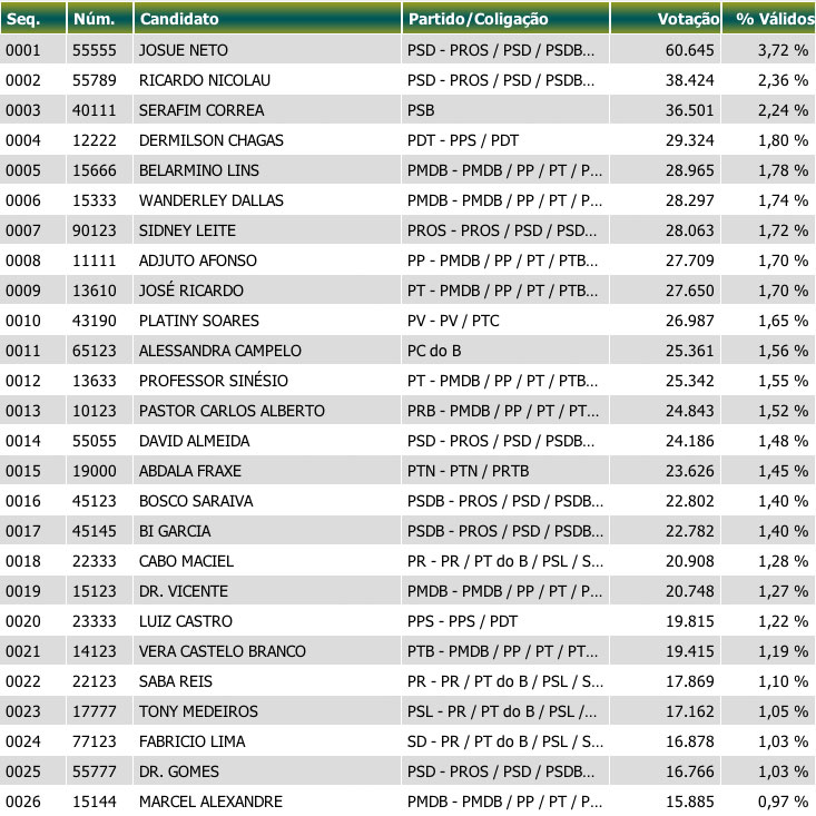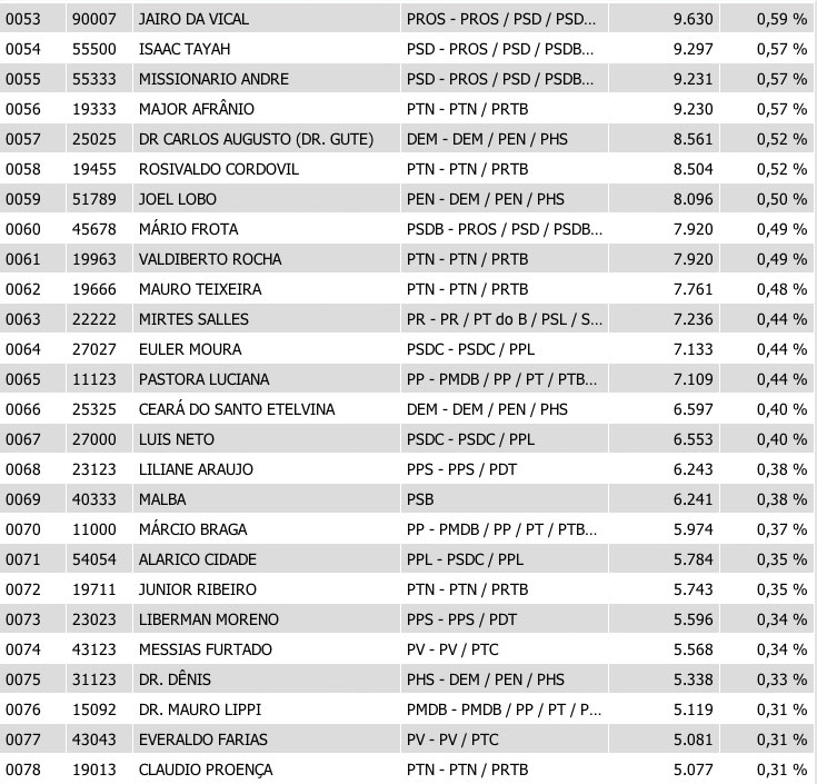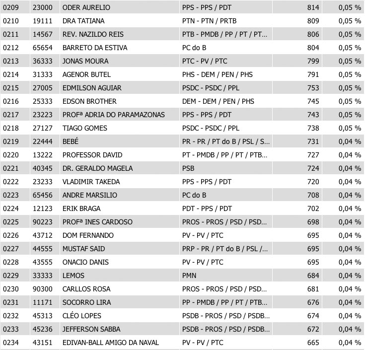 Início Amazonas Todos os votos para Deputado Estadual no Amazonas