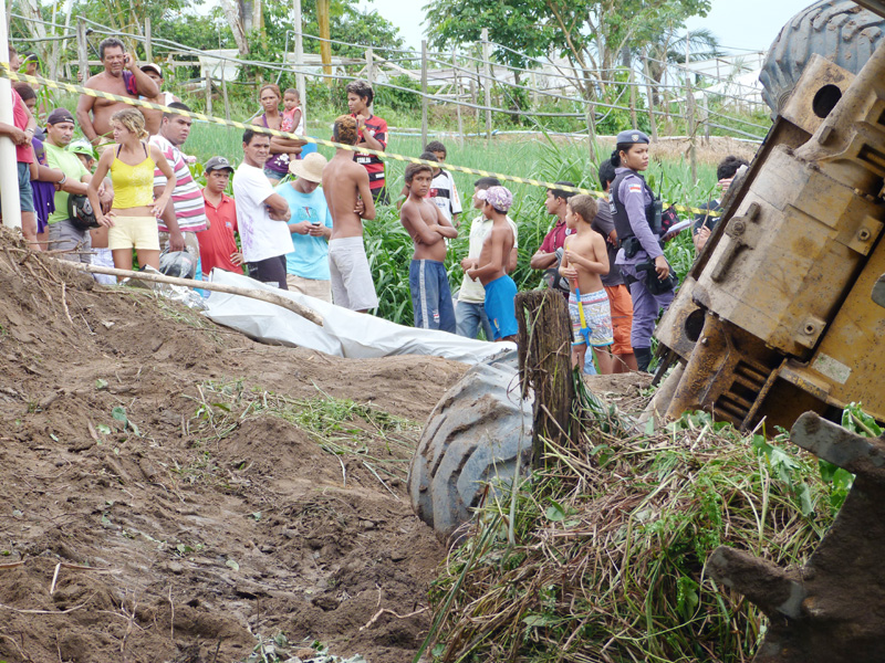 Um homem foi esmagado por um trator tipo escavadeira, quando limpava um terreno na comunidade do Giró, no bairro do Puraquequara, Zona Leste da cidade de Manaus.