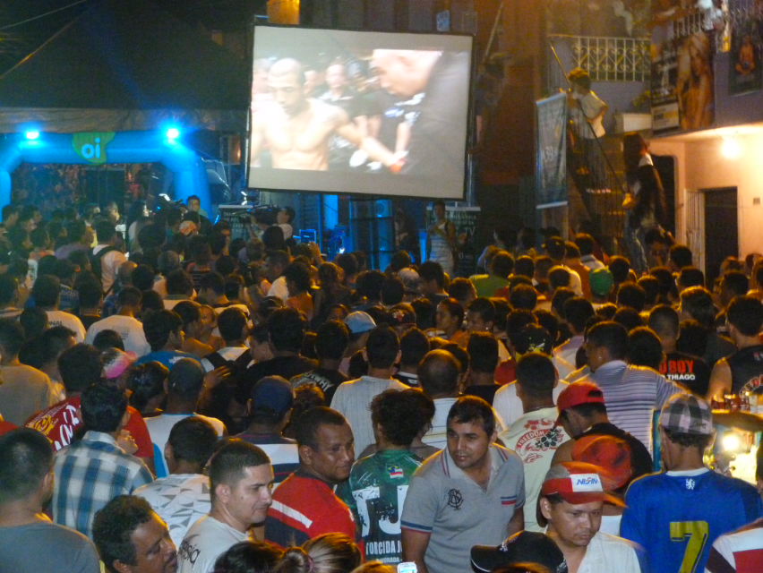 Em frente à casa da mãe do lutador foi colocado um teleão .Fotos: Pdro Jr/Portal do Holanda