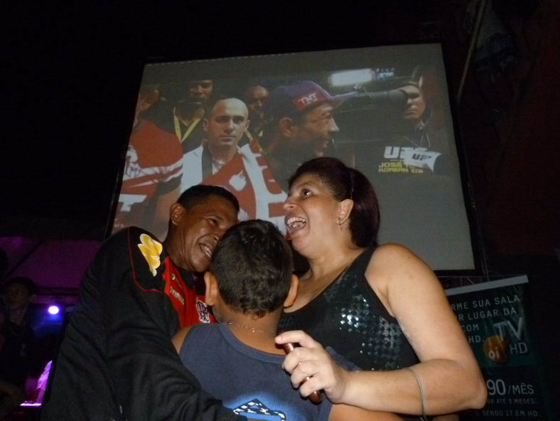 A vitória de José Aldo sobre Chan Sung Jung, o "Zumbi Coreano", na madrugada deste domingo, foi comemorada na casas da mãe do lutador, dona Rocilene Socorro Souza em Manaus (veja fotos) . Foi a quinta defesa de Aldo na categoria pela principal franquia de MMA do mundo. Com a vitória, ele manteve o cinturão dos penas, no UFC Rio 4