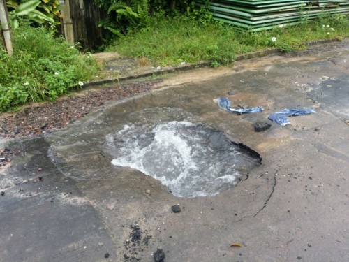 Manaus/Am – Moradores da rua B, no bairro Campos Salles, Zona Oeste, reclamam de um vazamento de água que desperdiça o líquido na via pública há mais de duas semanas sem que a concessionária tome providências. Além do desperdício, o asfalto está cedendo e colocando em risco quem transita naquela área próxima à feira do bairro.
