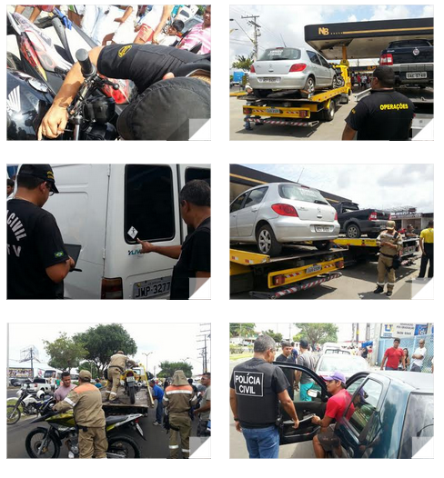 Durante toda a manhã, os agentes fiscalizaram 750 veículos e abordaram 450 pessoas. Ao todo, 12 veículos, sendo oito motos e quatro carros, foram recolhidos ao parqueamento do Detran e 99 infrações foram registradas, entre as quais problemas na documentação do veículo, como o IPVA atrasado, falta da carteira de habilitação e até carros com restrição de roubo.