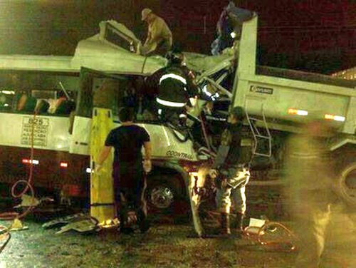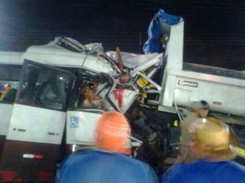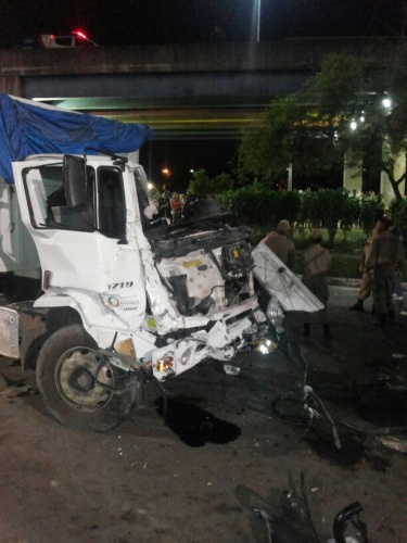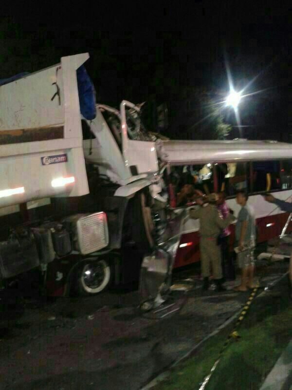 Manaus/AM - Imagens feitas no local do acidente por testemunhas mostram o estado em que os dois veículos envolvidos ficaram após choque que pegou o micro-ônibus de frente. Confira.