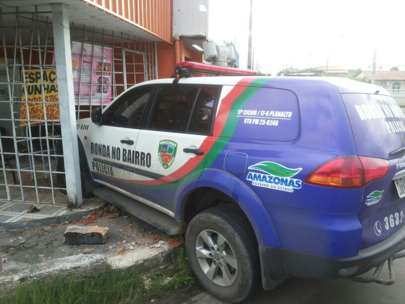 MANAUS - Uma viatura do Ronda no Bairro, perdeu o controle e atingiu um salão de beleza nesta terça-feira (27), na Avenida Dublin, quadra 32, Conjunto Belvedere.