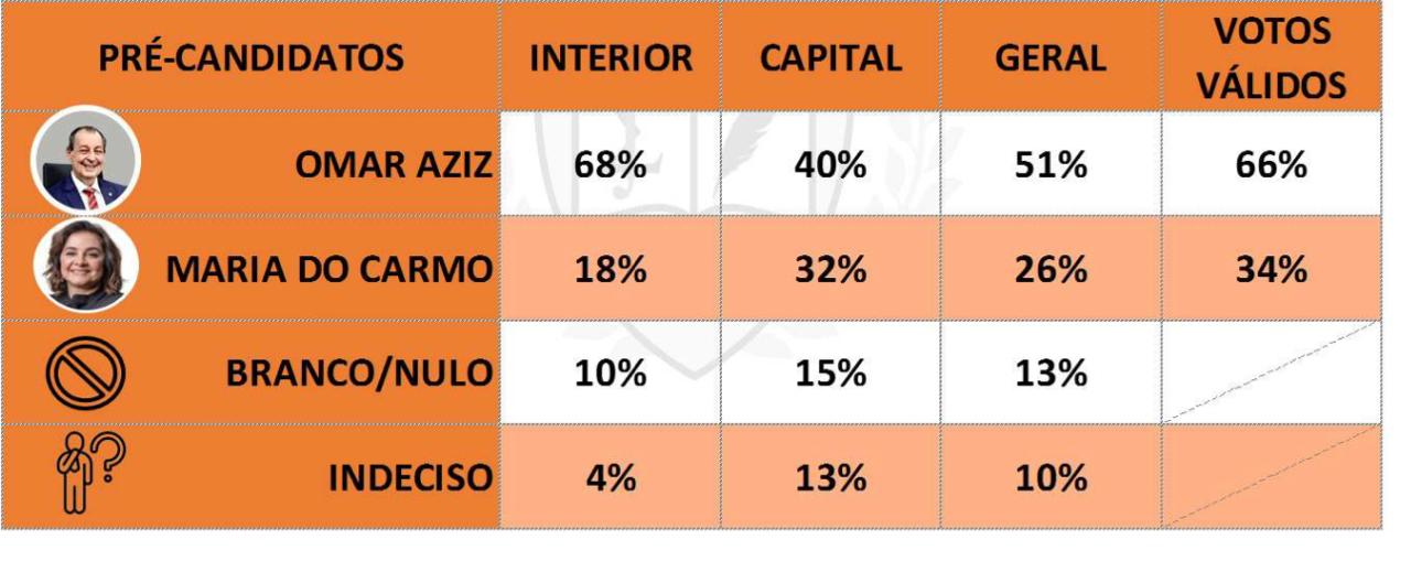 A pesquisa Sensus revela um quadro amplamente favorável ao senador Omar Aziz (PSD) na disputa do governo do Amazonas. Nada menos que 66% dos entrevistados declararam intenção de voto em seu nome.